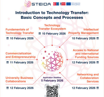 Applications are now open for the "Introduction to Technology Transfer: Basic Concepts and Processes" Training Program The training program titled "Introduction to Technology Transfer: Basic Concepts and Processes" developed within the scope of the STEIDA - Strengthening the Technology Transfer Ecosystem with Innovative and Digital Approaches Project, which is implemented by the Technology Transfer Application and […]